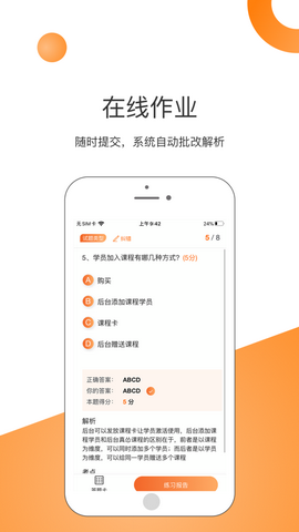 在线随时提交,系统自动批改,解析纠错,省事省力,薄弱点智能分析,助力教研